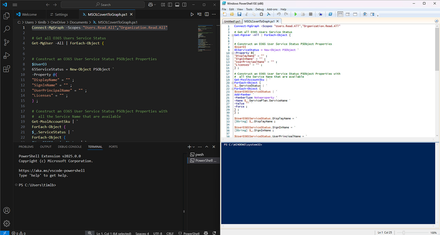 I’ll go over these items tomorrow. I ended up demoing using Copilot to re-write/convert the MSOL script and that exercise also demonstrated one of my personal rules of thumbs for AI - trust but verify.
